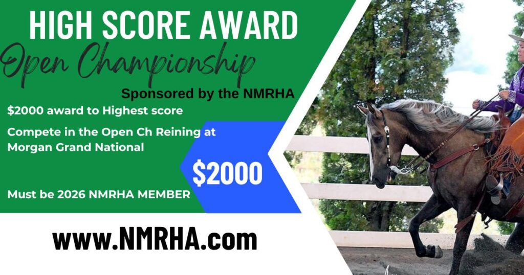 A brand new award for the member with the highest score in the World Champion Open Reining class at our Morgan Grand National and World Championship show in Oklahoma City in October! The highest score in the class will receive $2000 that has been generously donated by Littlewood Morgans and Devine Morgans.